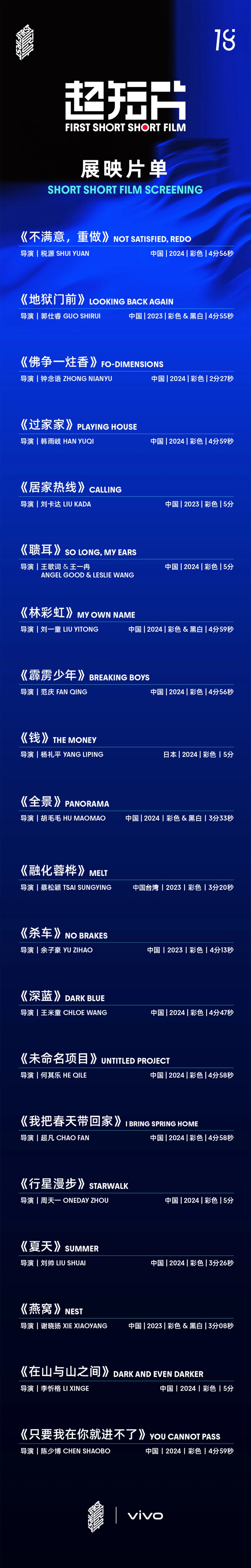 第十八届FIRST青年电影展超短片入围及展映作品将于7月20日至7月28日在西宁进行展映,早鸟观影证现已开放注册,标准观影证及单日证将于7月9日开启,欢迎登陆FIRST影展官网进行查看!